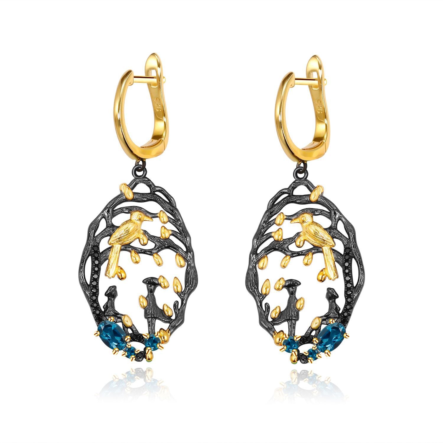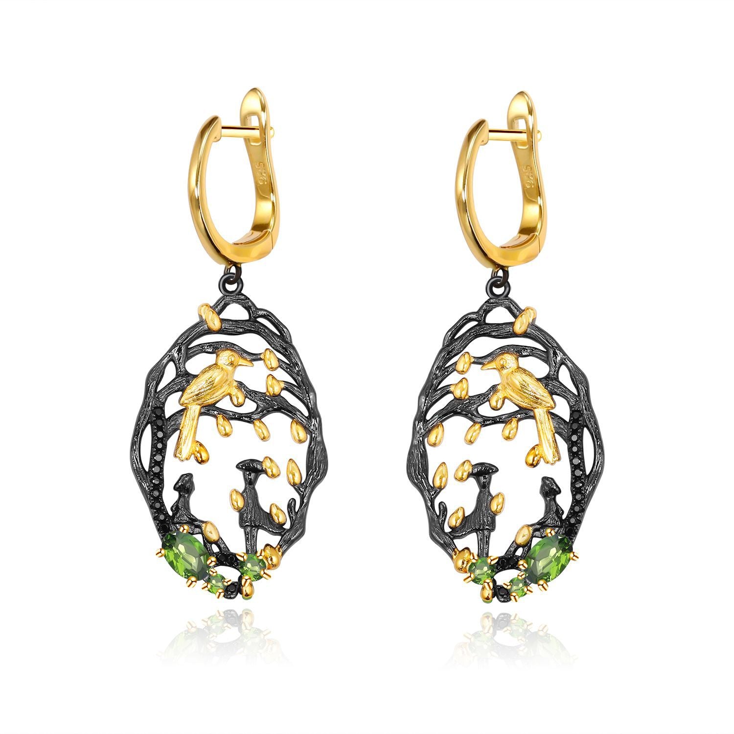 Colourful Gemstone Forest Silver Drop Earrings for Women
