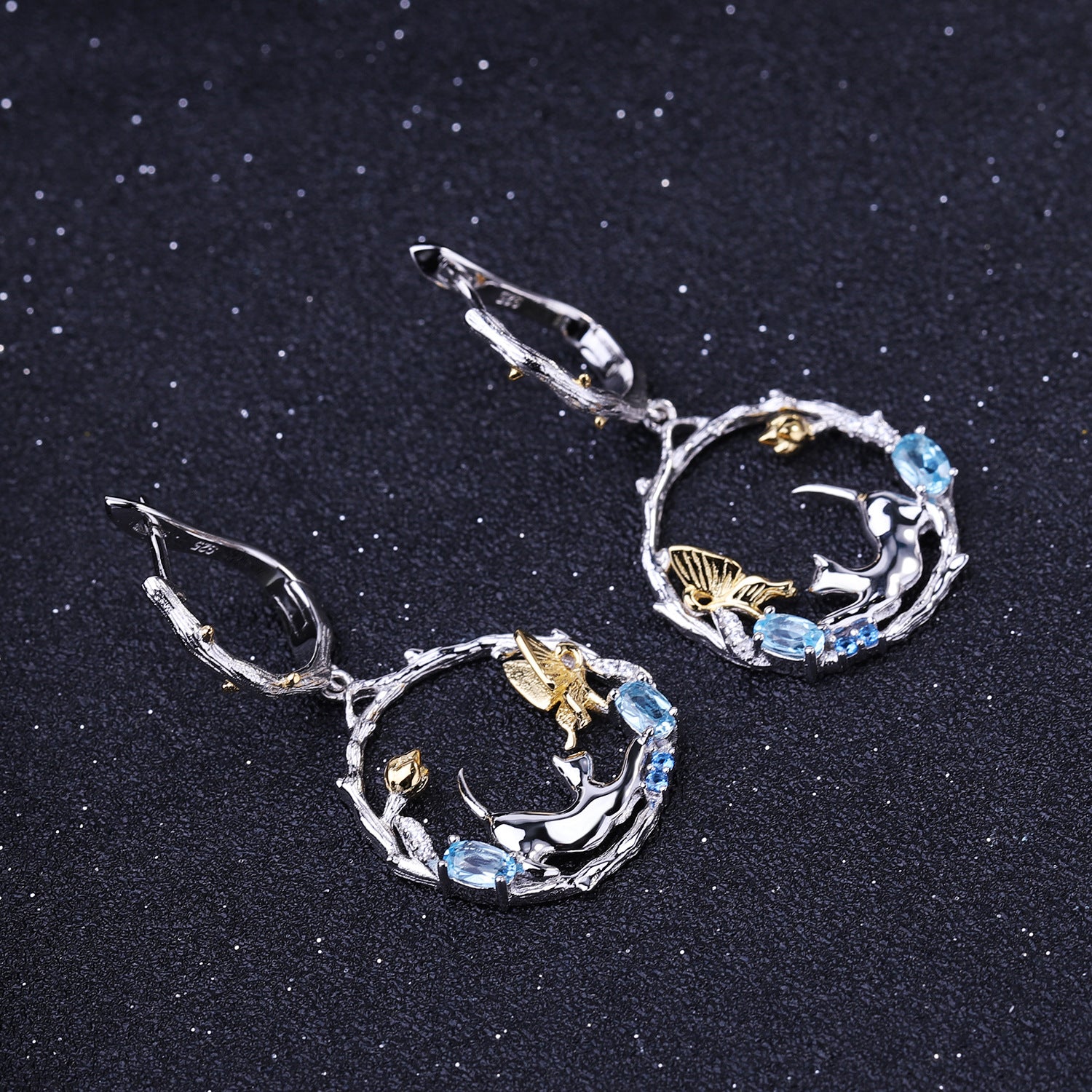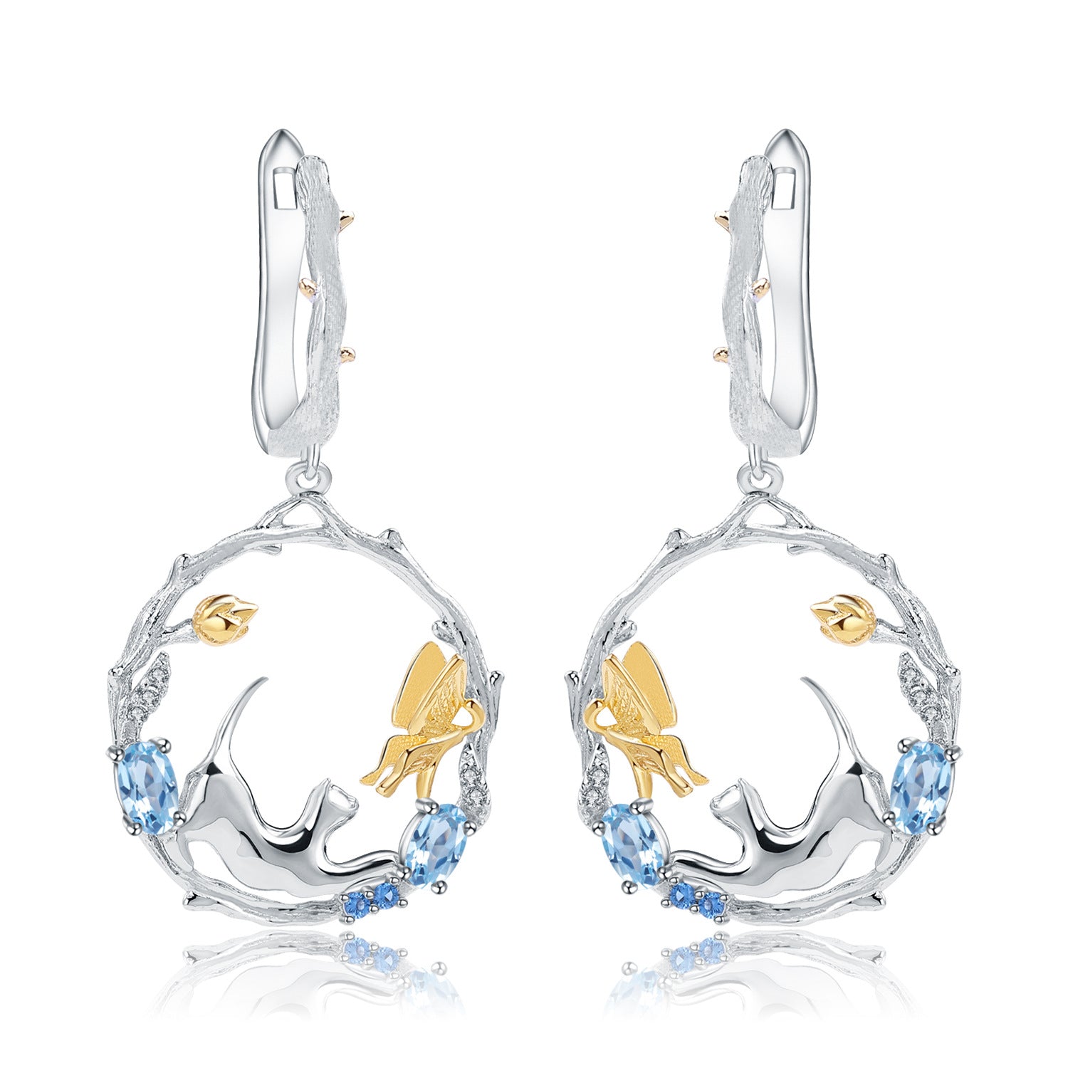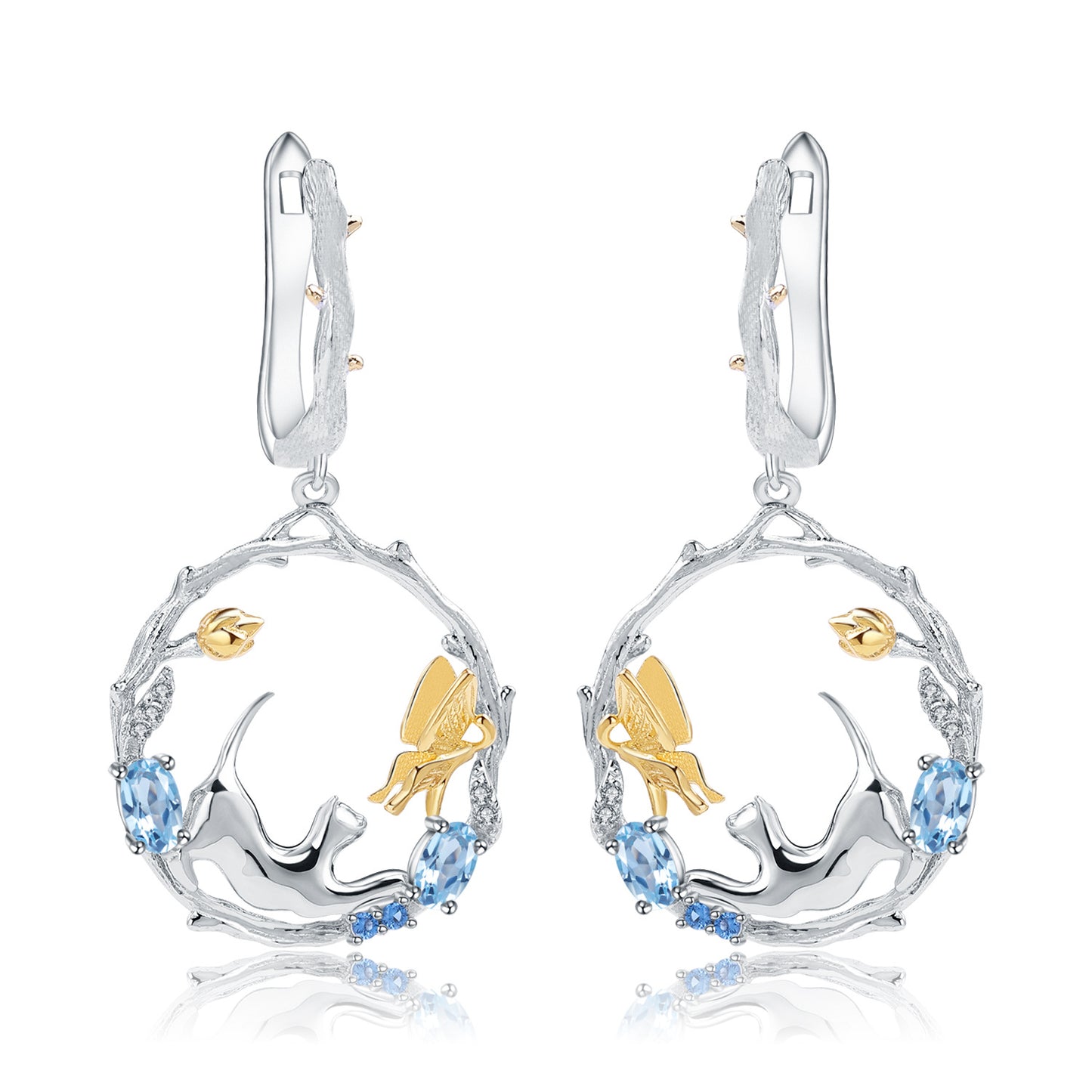 Animal Design 925 Silver Topaz Drop Earrings for Women