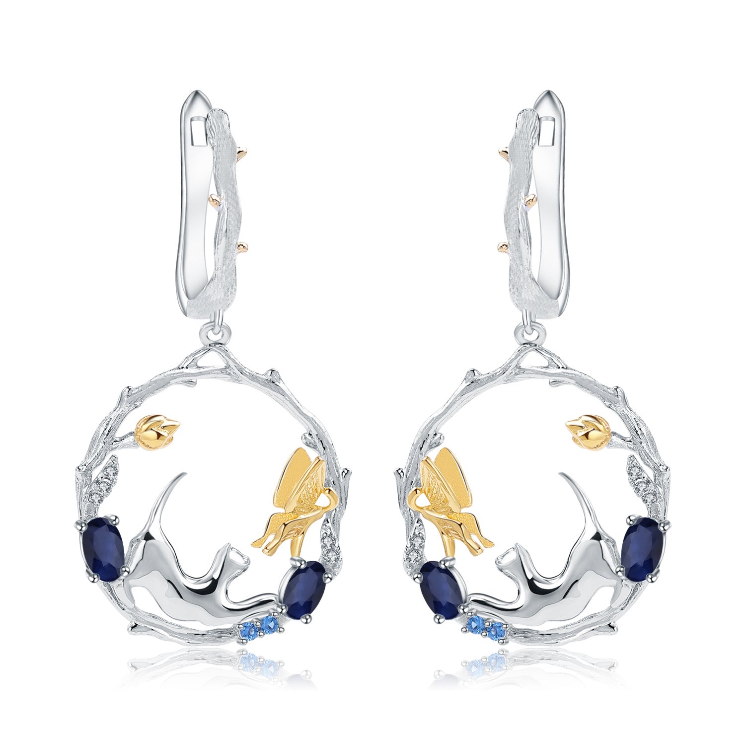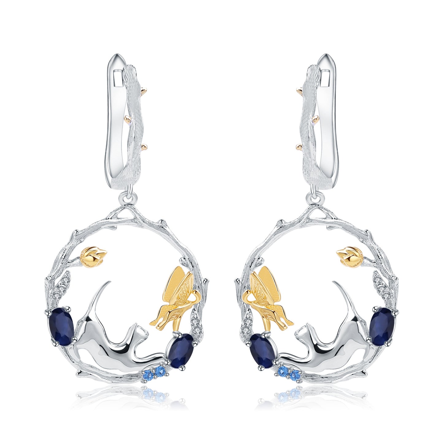 This earring is a fun and energetic accessory, featuring a circular wreath as a pendant, symbolizing perfection and harmony. There is a little cat chasing a butterfly in the pendant, symbolizing the pursuit of dreams and a happy life.