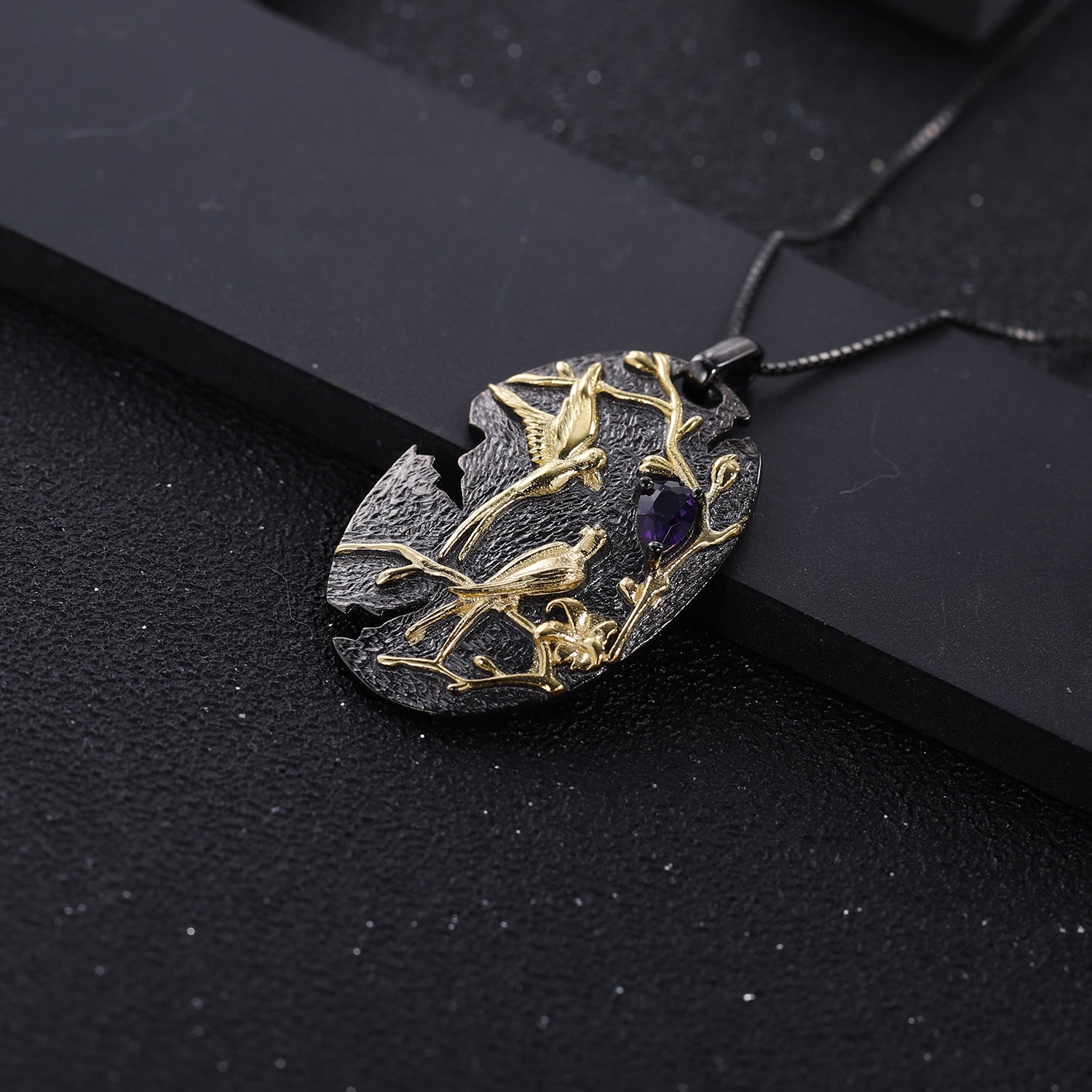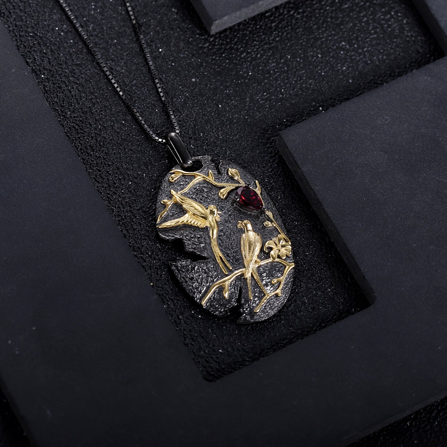 Sport a classic look with this sterling silver necklace featuring an oval pendant with magpie pattern, Decorated with a colourful gemstone brighten your look and will become an unforgettable accessory. It's a must-have for any jewellery collection.