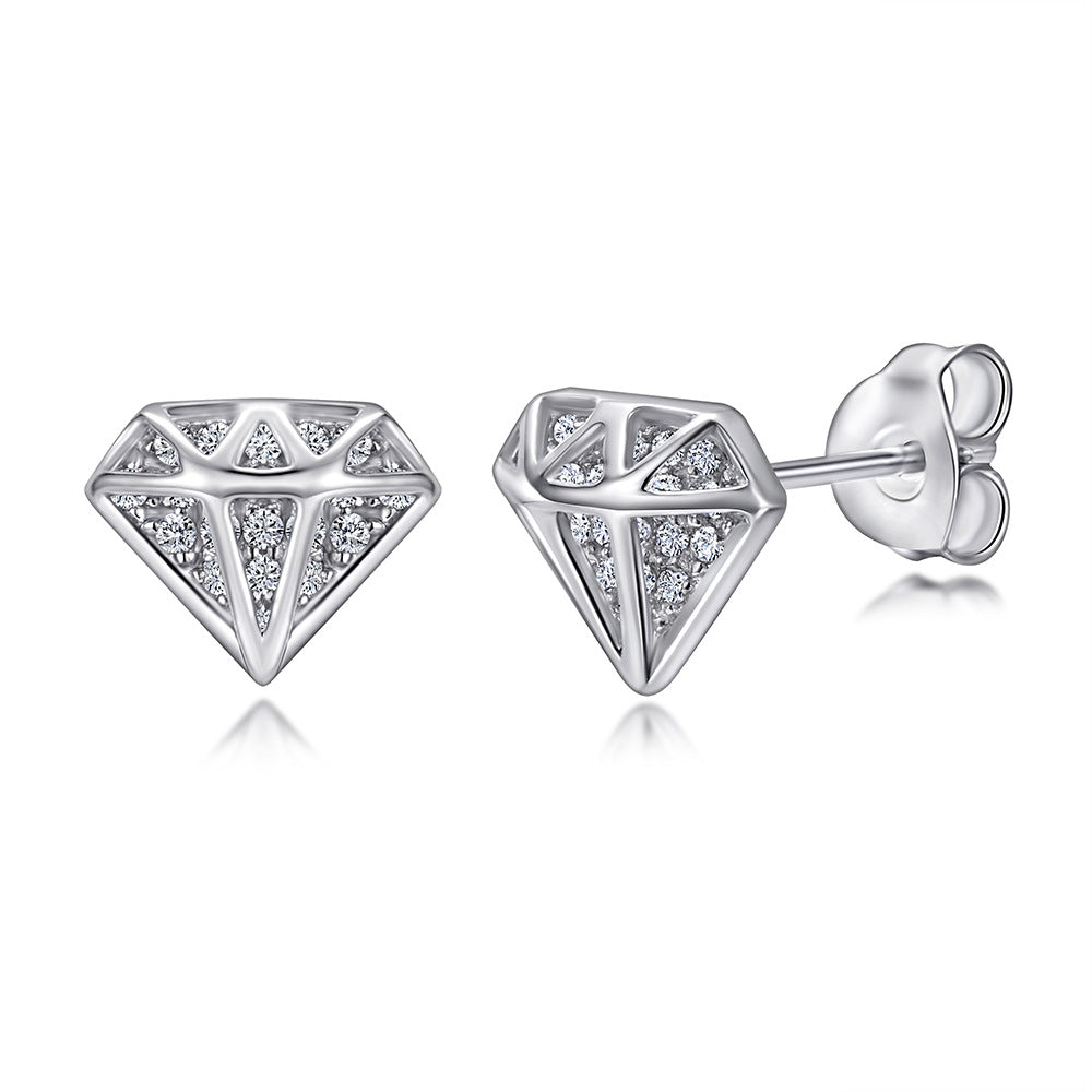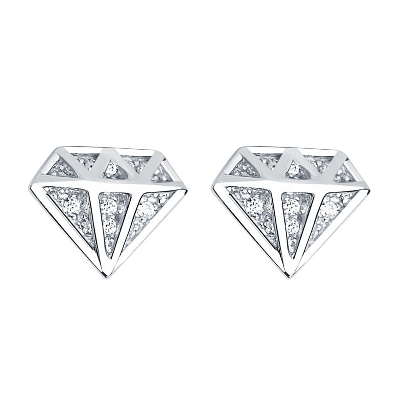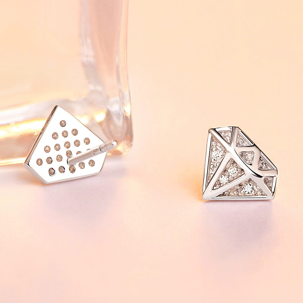 Zircon Diamond Shape Silver Studs Earrings for Women