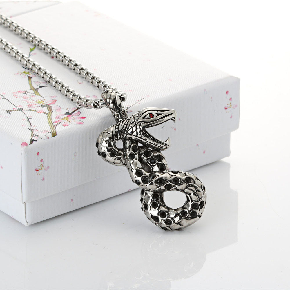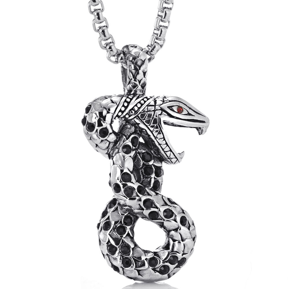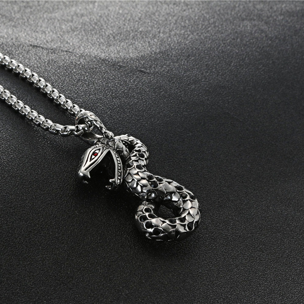 Gothic Snake Pendant in Titanium Steel with Zircon Accents - Retro Religious Accessories for Men