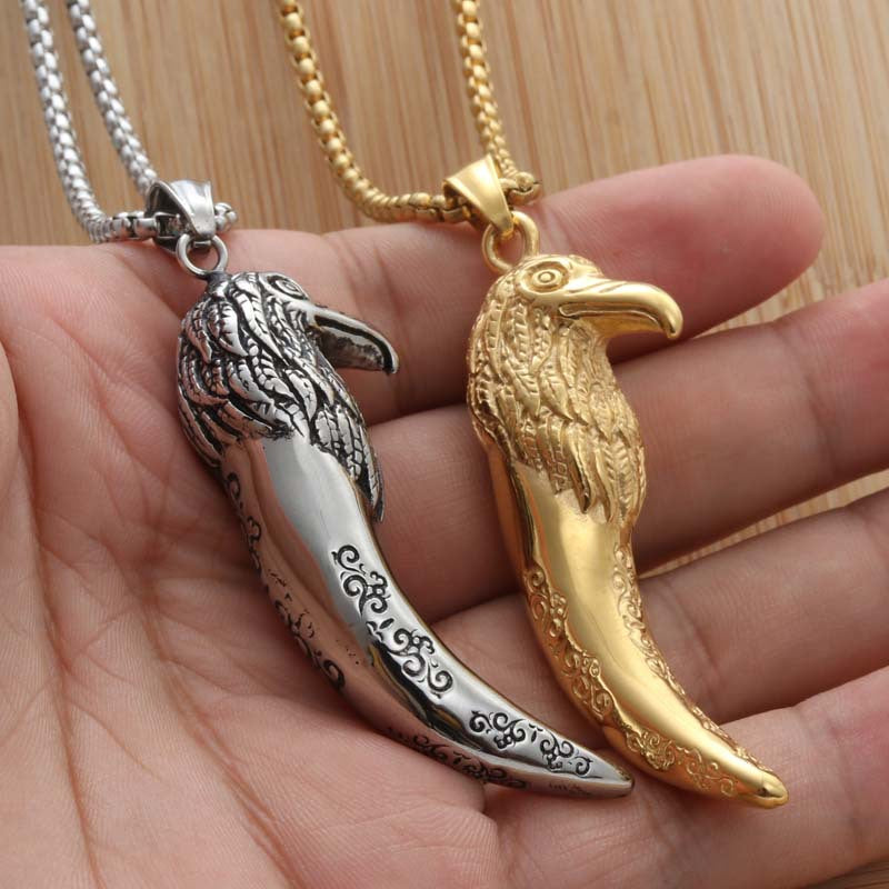Titanium Steel Eagle Tooth Pendant Necklace - Retro Punk Style for Men
