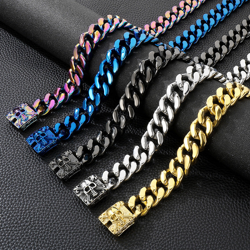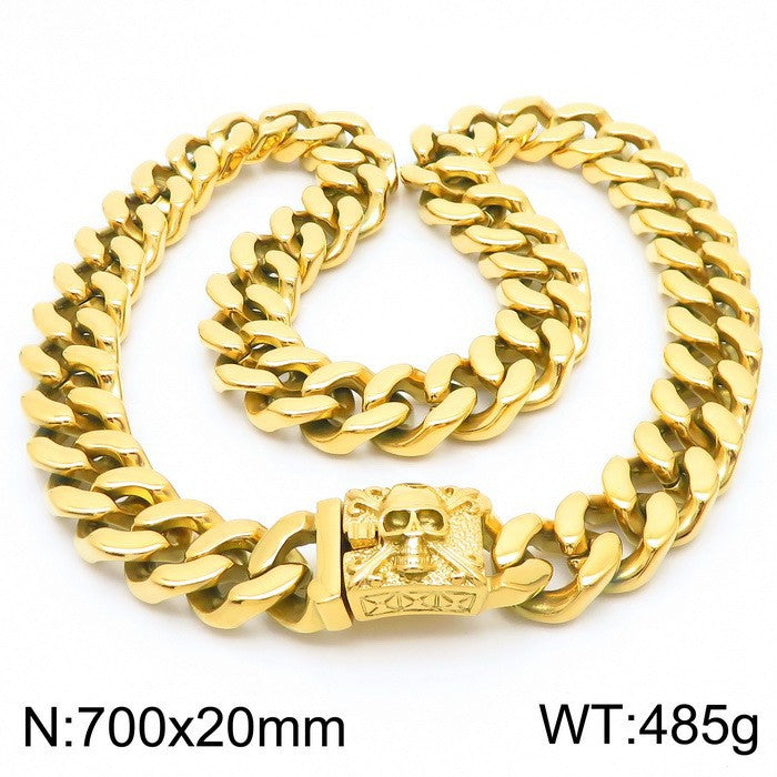 Bold Titanium Steel Skull Necklace - Retro Double-Sided Polished Cuban Chain for Men