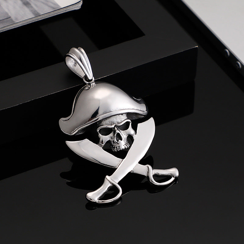 Stand out with the Domineering Pirate Skull Double Knife Pendant