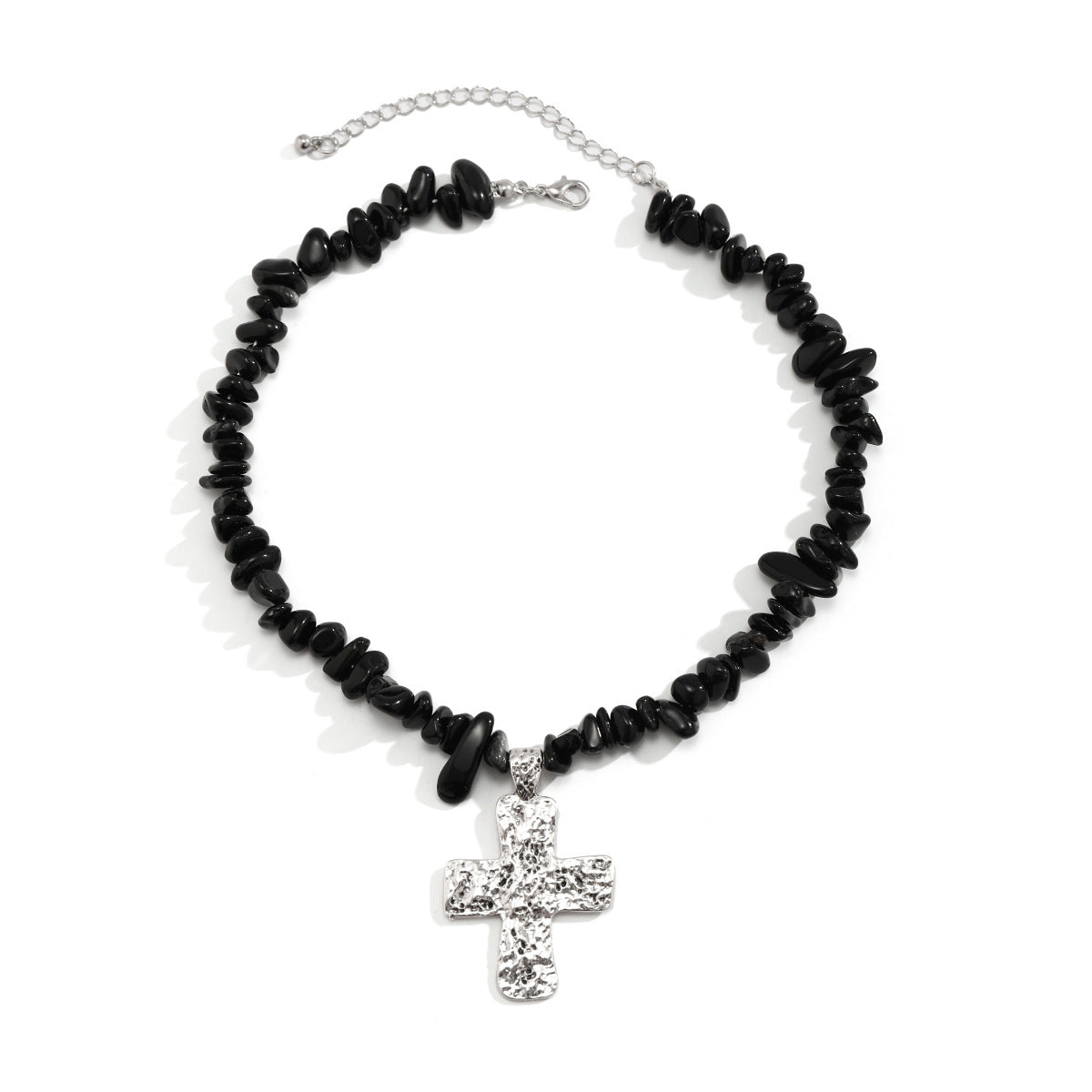 Unleash your inner fashionista with our Europe and The United States Cross-border Jewelry Irregular Beach Turquoise Cross Necklace. This necklace is not only simple and versatile but also exudes a natural charm that will elevate any outfit.
