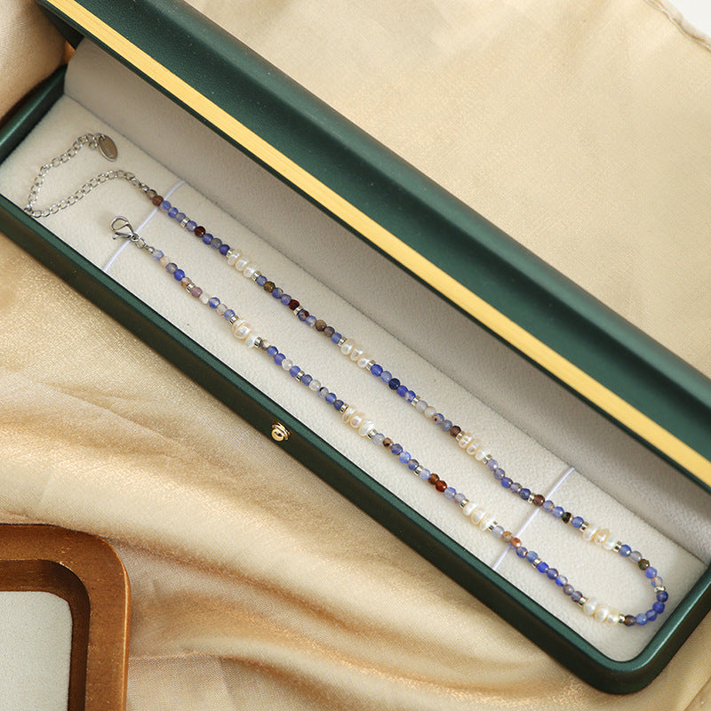 Luxurious Handcrafted Agate Stone Necklace with Freshwater Pearls