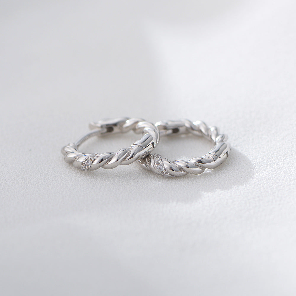Accentuate the beauty of your look with these elegant Twist with Zircon Silver Stud Earrings. Crafted from sterling silver, this hoop earrings feature an unique spiral twist design, and decorate with zircon. Enjoy a timeless look that's perfect for any occasion with this stylish and sophisticated stud earrings.