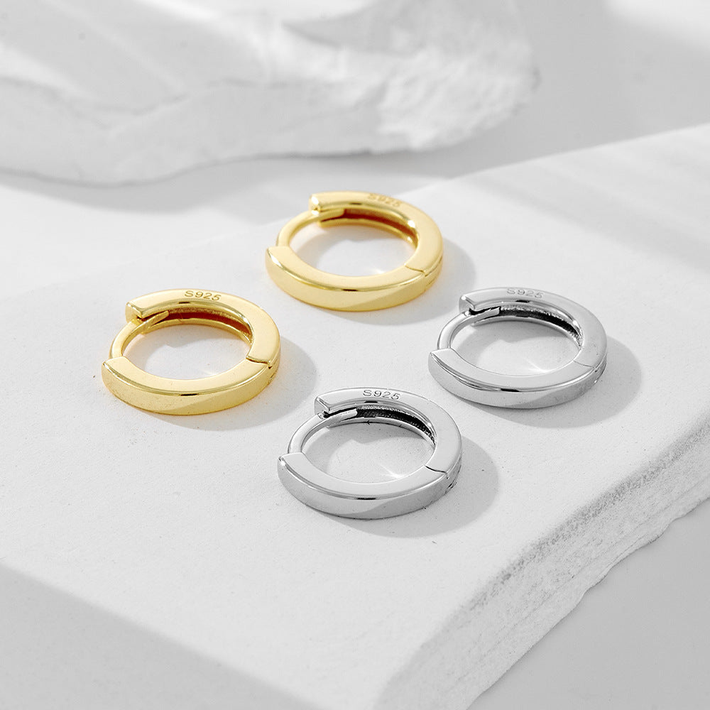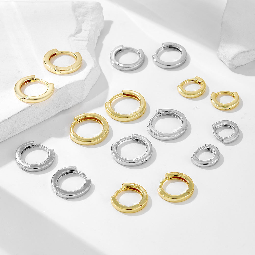 Elevate your accessory game with our European and American cross-border simple texture circle ear buckle S925 sterling silver personalized smooth surface stacked wearing versatile earrings ear jewelry. Crafted with precision and style, these earrings are the perfect blend of modern elegance and timeless design.