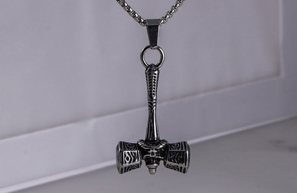 Discover the perfect accessory to showcase your individuality and boldness with our European and American cross-border Thor war drum hammer pendant. This unique piece combines retro flair with modern aesthetics, making it a must-have for the contemporary male fashion enthusiast.