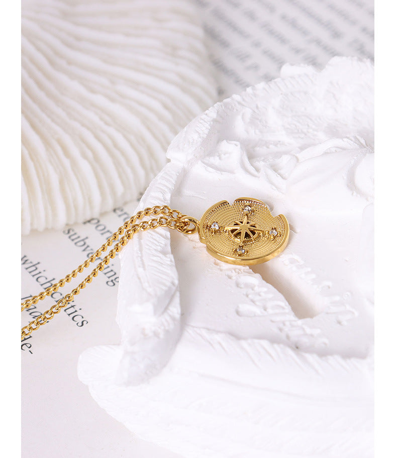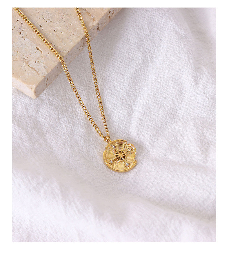 Elevate your look with this stunning piece that features a notch round medal copper pendant, adding a touch of uniqueness to your ensemble. The clavicle chain design ensures a perfect fit and comfortable wear, making it ideal for daily wear or special occasions.
