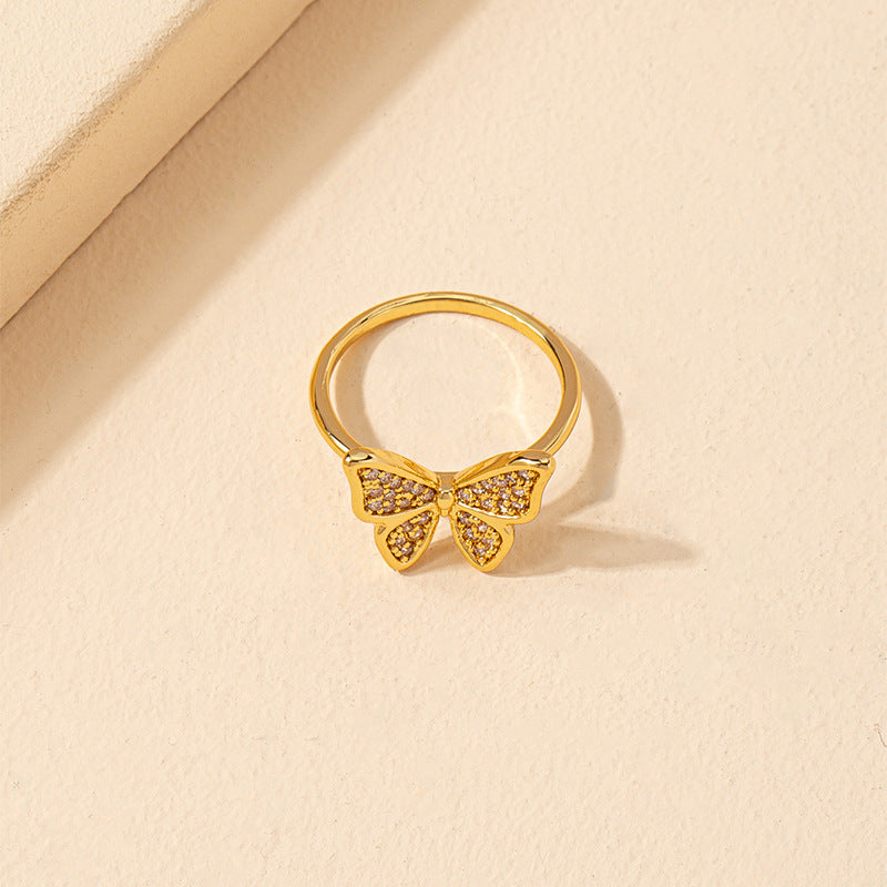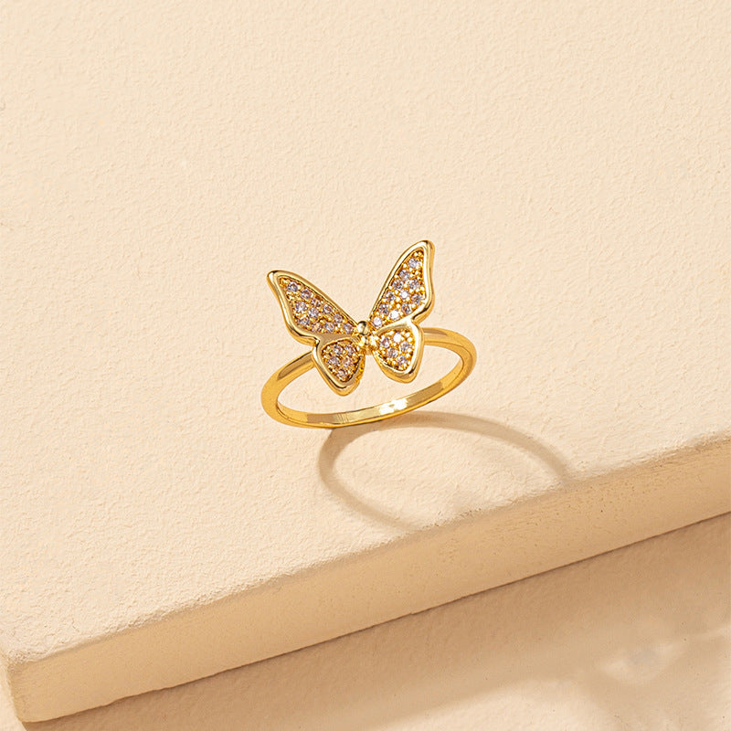Diamond Butterfly Delight Ring - Elegant Copper Zircon Jewelry