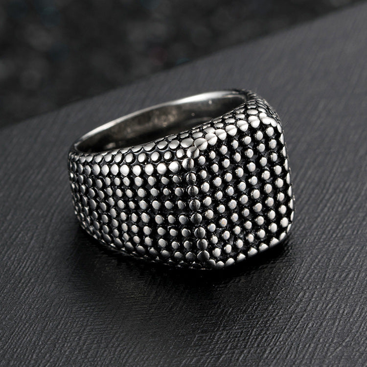 Introducing our stunning European and American domineering dot-shaped men's rings, titanium steel retro trendy fashion jewelry, ring jewelry for men. This exceptional piece is designed for the modern man who appreciates both style and durability. Crafted from high-quality titanium steel, this ring is not only robust but also showcases a unique dot-shaped design that effortlessly elevates any outfit.