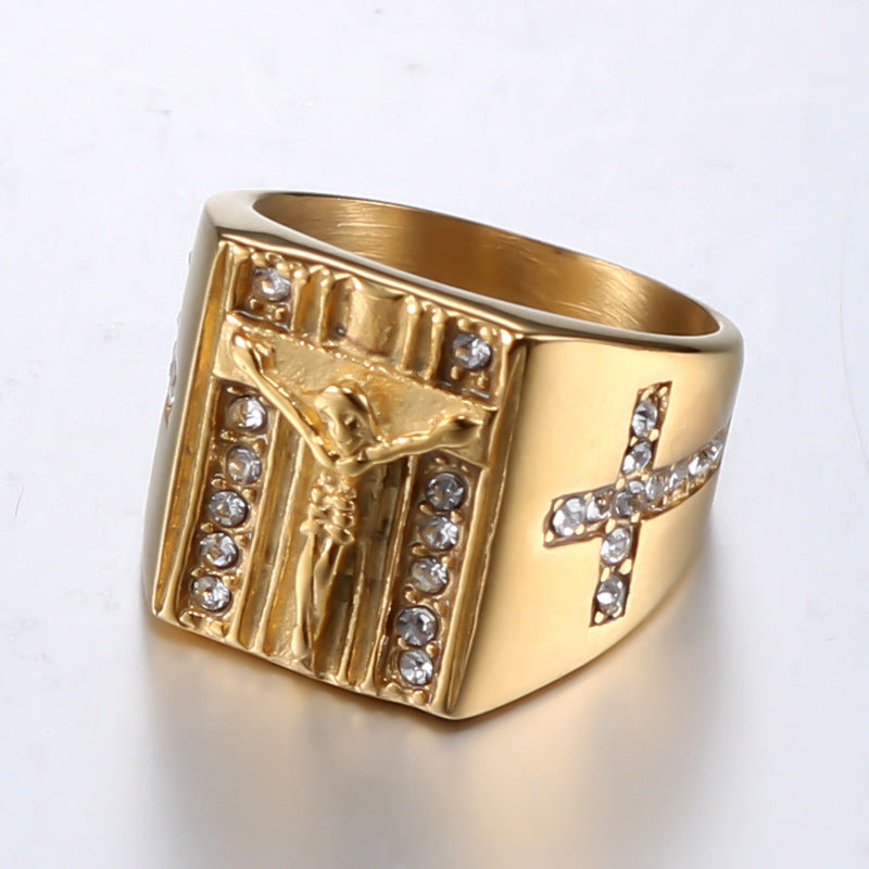 Don't miss out on adding this timeless piece to your jewelry collection. Perfect for gifts or personal use, the European and American Fashion Cross Titanium Steel Ring is a must-have accessory for every man's wardrobe.