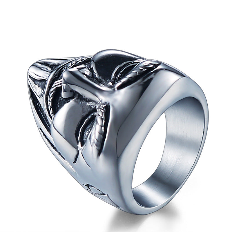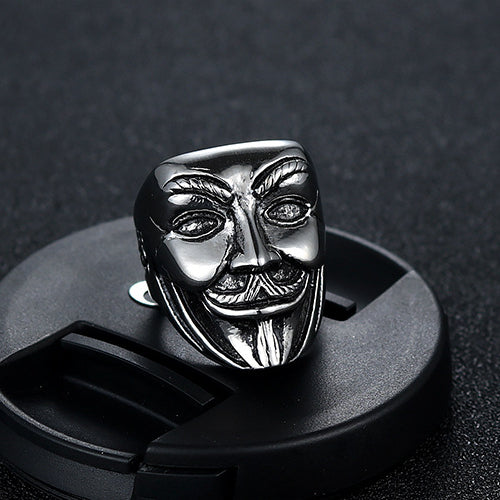 Titanium Steel V Face Clown Punk Ring - European and American Fashion Film-Inspired Jewelry for Men