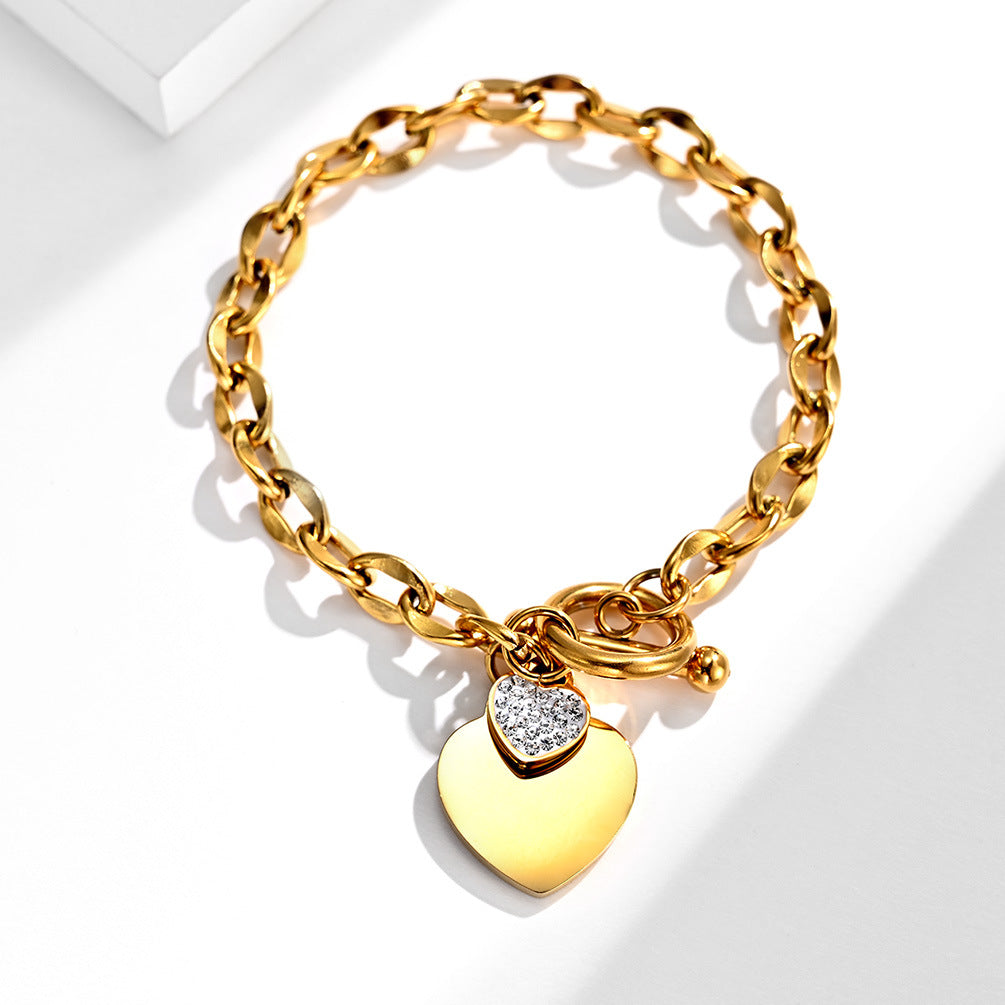 Designed for both men and women, this bracelet adds versatility to your accessory collection. Whether you're gifting it to a loved one or treating yourself, it promises to be an unforgettable addition. Experience the blend of style and comfort with the European and American fashion magazines love zircon temperament rose gold bracelet OT buckle Korean version of elegant women's jewelry for men and women.