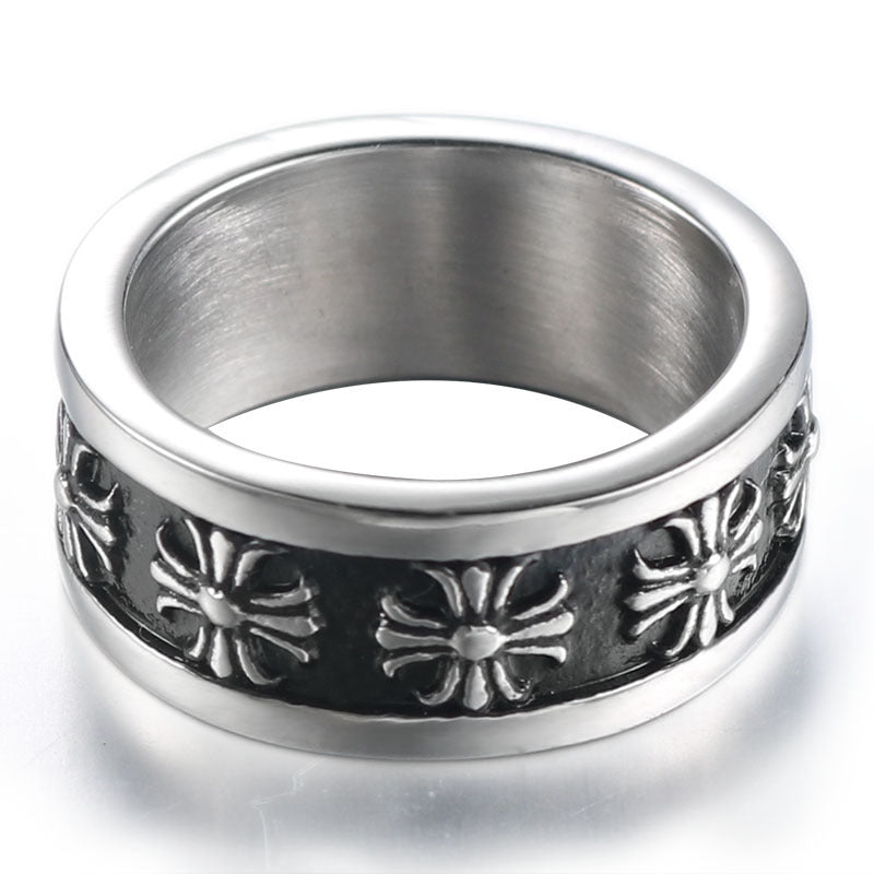 Punk Cross Flower Stainless Steel Ring - Unisex Retro Fashion Jewelry for Men and Women