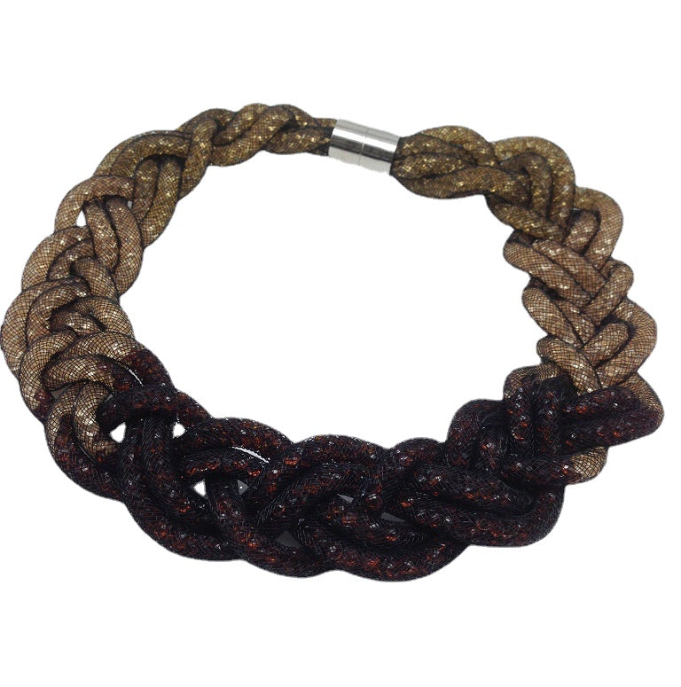 Introducing our European and American Fashion Vintage Multi Layer Woven Fried Dough Twists Crystal Short Women's Necklace Collar Chain from the Planderful Collection, named Savanna Rhythms.