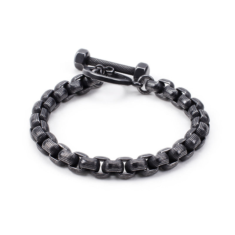 Men's Fitness Steel Dumbbell Bracelet - Trendy Jewelry for Sports Enthusiasts