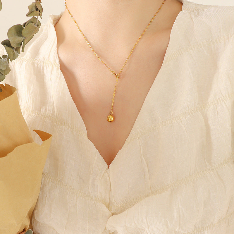 Geometric Ball Pendant Necklace with Adjustable Tassels - Stylish Gold-Plated Women's Jewelry