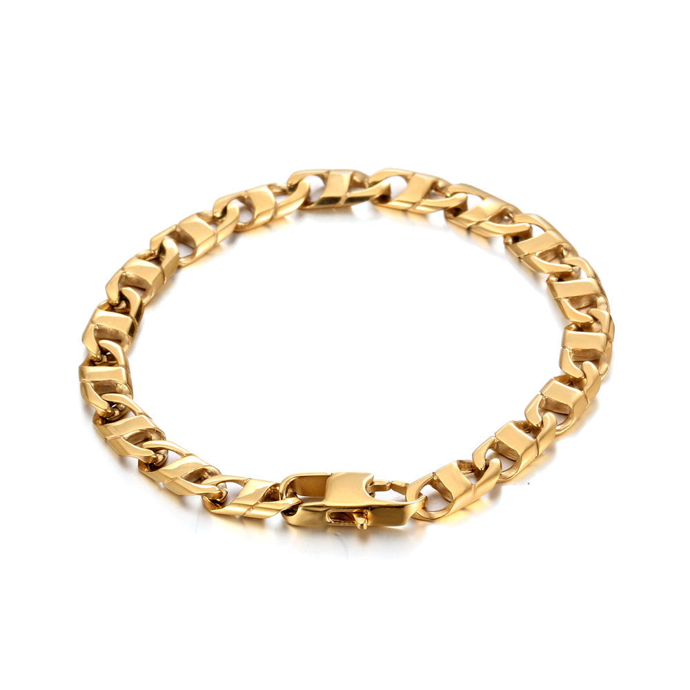 Unleash your inner rebel with our European and American hip-hop punk men's bracelet and locomotive rock necklace. Crafted for the modern man who dares to be different, this stunning two-color jewelry piece is made from durable titanium steel, ensuring that it stands the test of time while making a bold statement.