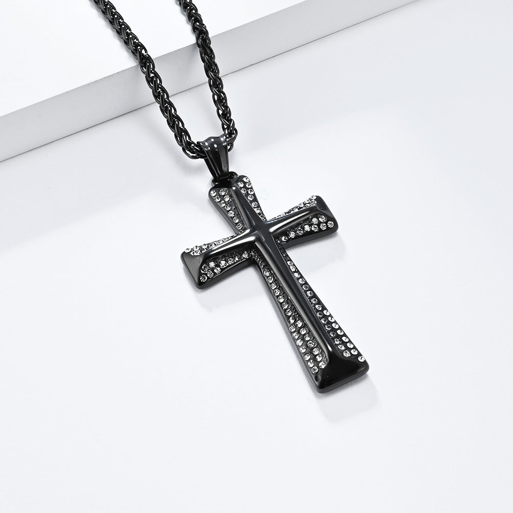 Elevate your style with our European and American hip hop titanium steel plated 18K gold full zircon cross necklace. Crafted for the modern man who appreciates niche personality and unique accessories, this stunning pendant is the perfect addition to any outfit.