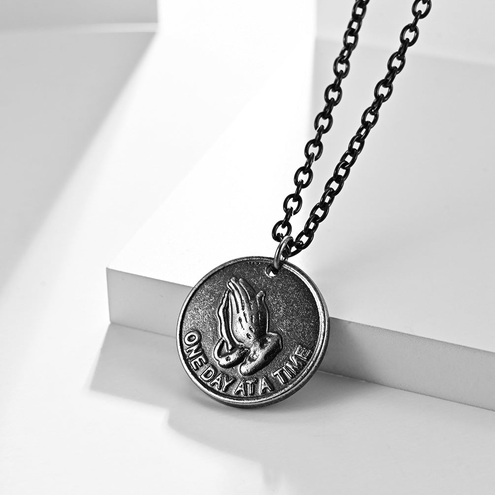 Introducing the European and American hipster wear accessories retro style ancient silver prayer hand hipster hip-hop personality necklace for men, a stunning piece that embodies the perfect blend of modern style and ancient symbolism. Crafted from premium titanium steel, this necklace is not just an accessory; it’s a statement of personality and individuality. The unique design features an intricately detailed prayer hand pendant that resonates with a sense of spirituality and artistic flair, making it ideal for the contemporary man who values both fashion and meaning.