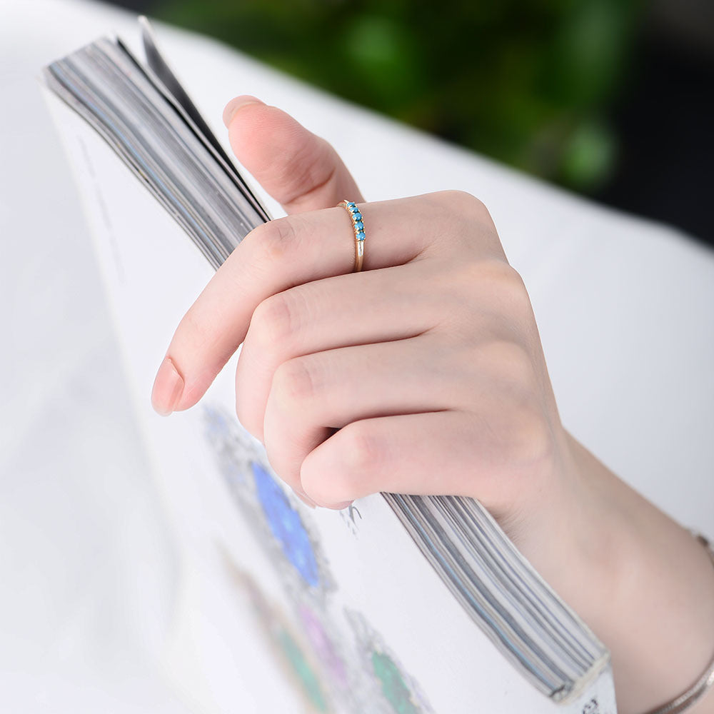 This Group Turquoise Stones Sterling Silver Ring is an elegant and timeless piece of jewelry, perfect for any occasion. It is crafted with Sterling Silver and decorated with five Turquoise Stones to create an elegant style. Wear it solo or stack with other rings for a bold and sophisticated look.