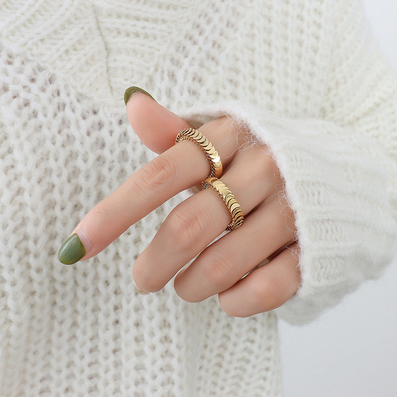 Luxurious Titanium Steel Gold Plated Blade Chain Ring Set
