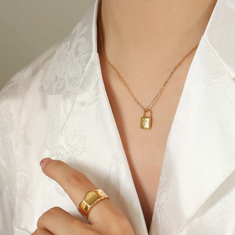 Elegant 18k Gold Plated Lock Pendant Necklace with Zircon Detail