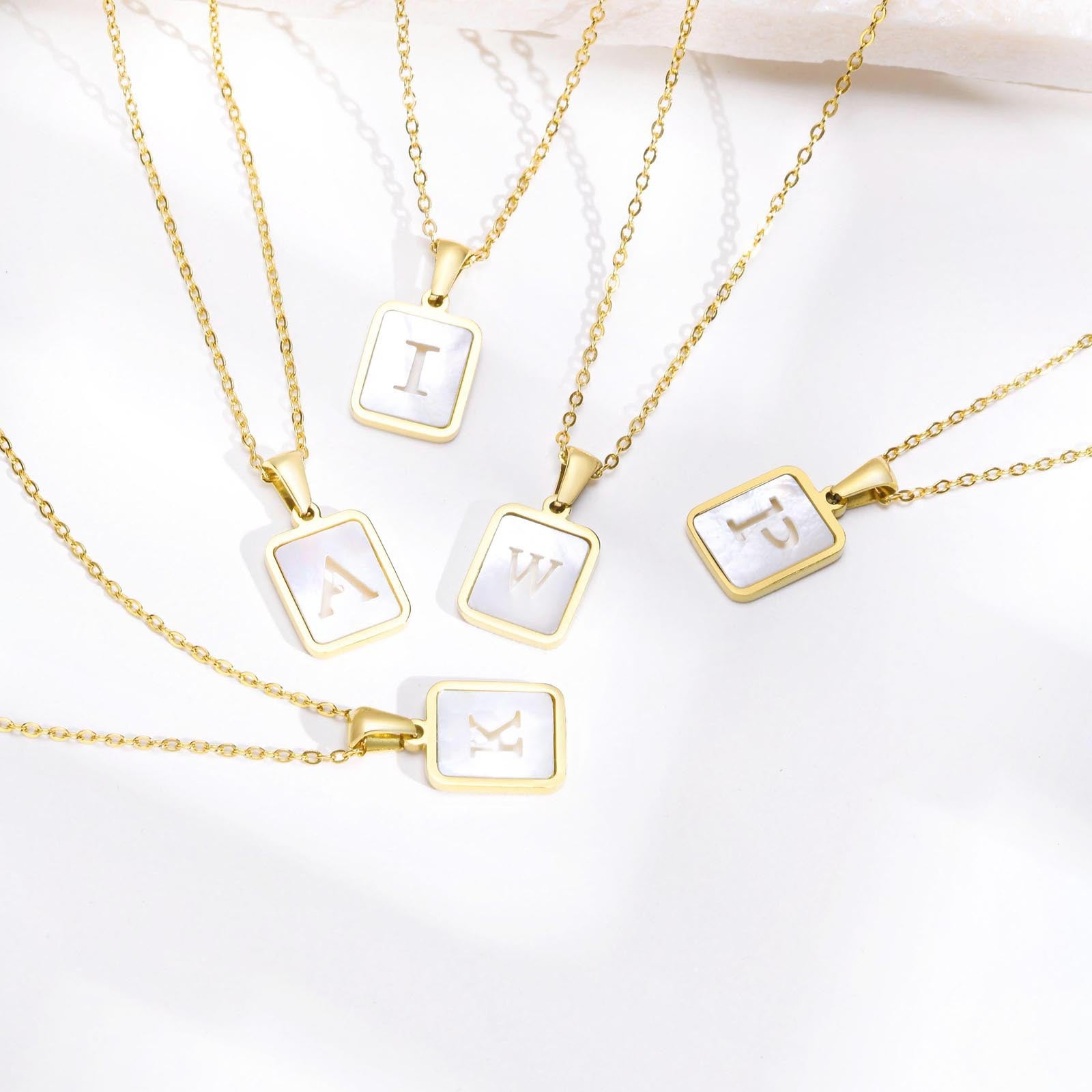 This necklace is not just a piece of jewelry; it's a statement of individuality. The gold finish adds a touch of luxury, while the stainless steel composition ensures that you can wear it daily without worrying about tarnishing. Whether you want to express your style or give a thoughtful gift, the European and American jewelry, shell square 26-letter stainless steel pendant necklace female gold is a perfect choice. Elevate your accessory game today!