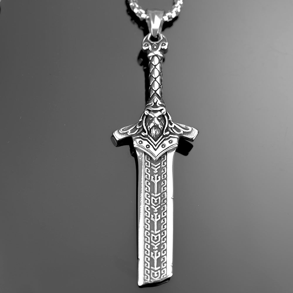 European and American Jewelry Stainless Steel Men's Pendant Necklace Retro Hip-Hop Double-Sided Sword Pendant