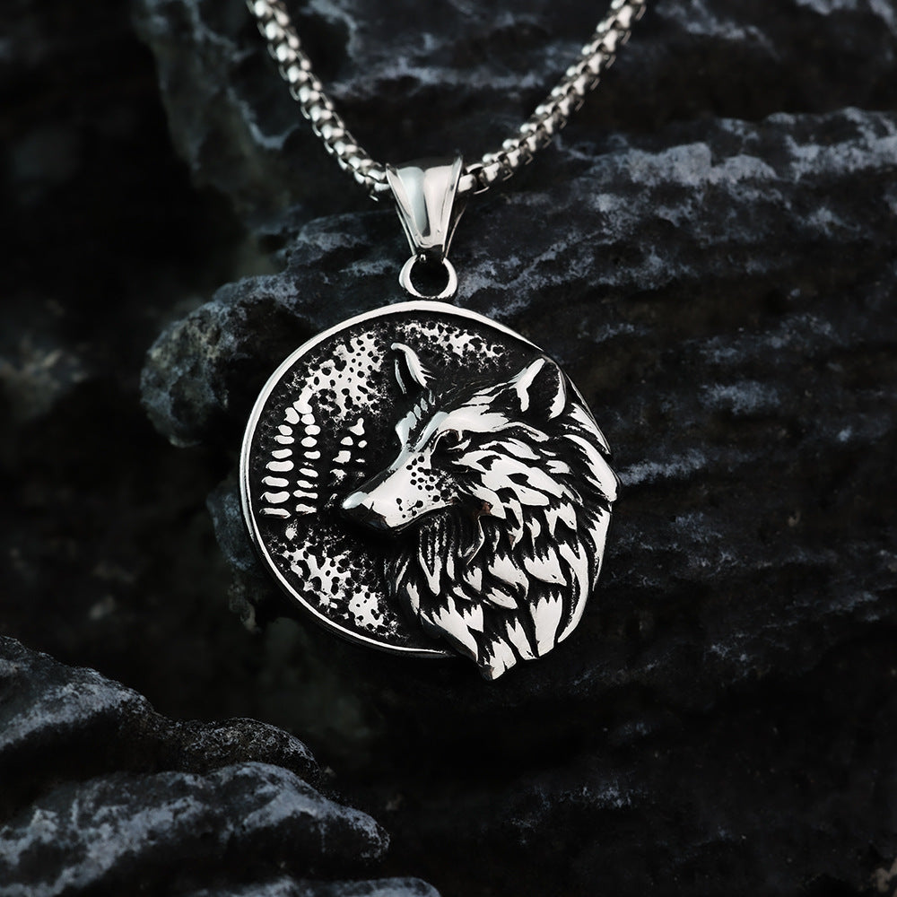 Planderful Titanium Wolf Pendant For Men Customizable Punk Retro Stainless Steel Wolf Necklace