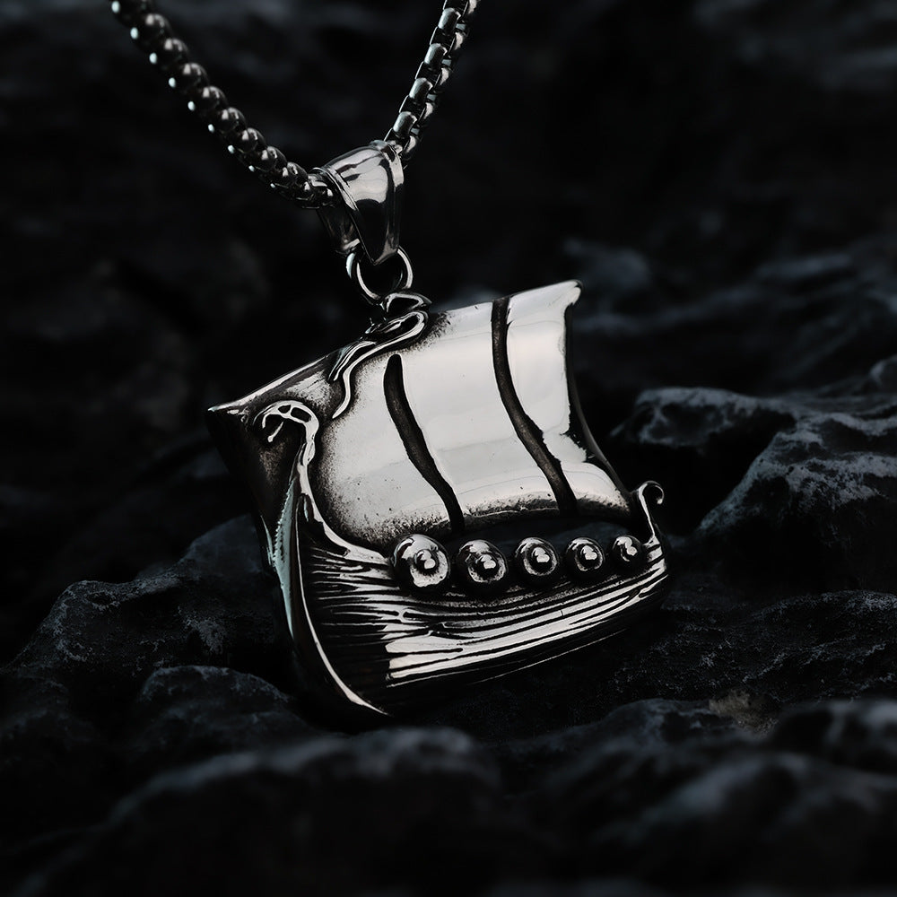 Elevate your style with the European and American jewelry titanium steel pendant men's stainless steel necklace retro hip hop viking warship sailing for men. This unique piece from the Planderful Norse Legacy collection combines modern artistry with historical inspiration, making it a must-have accessory for any fashion-forward individual.