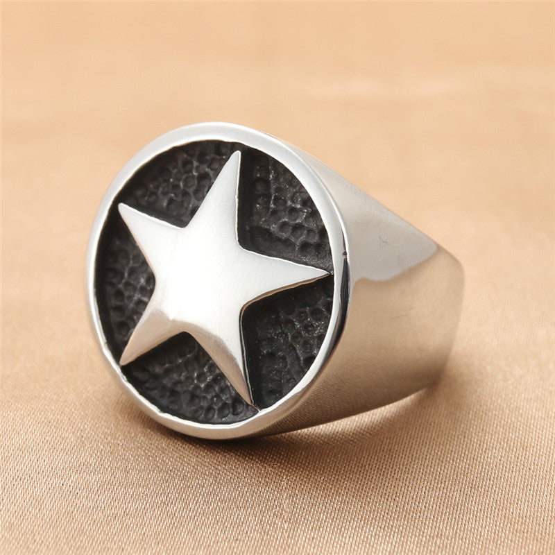 Titanium Steel Retro Pentagram Ring for Men - Trendy Personalized Accessory