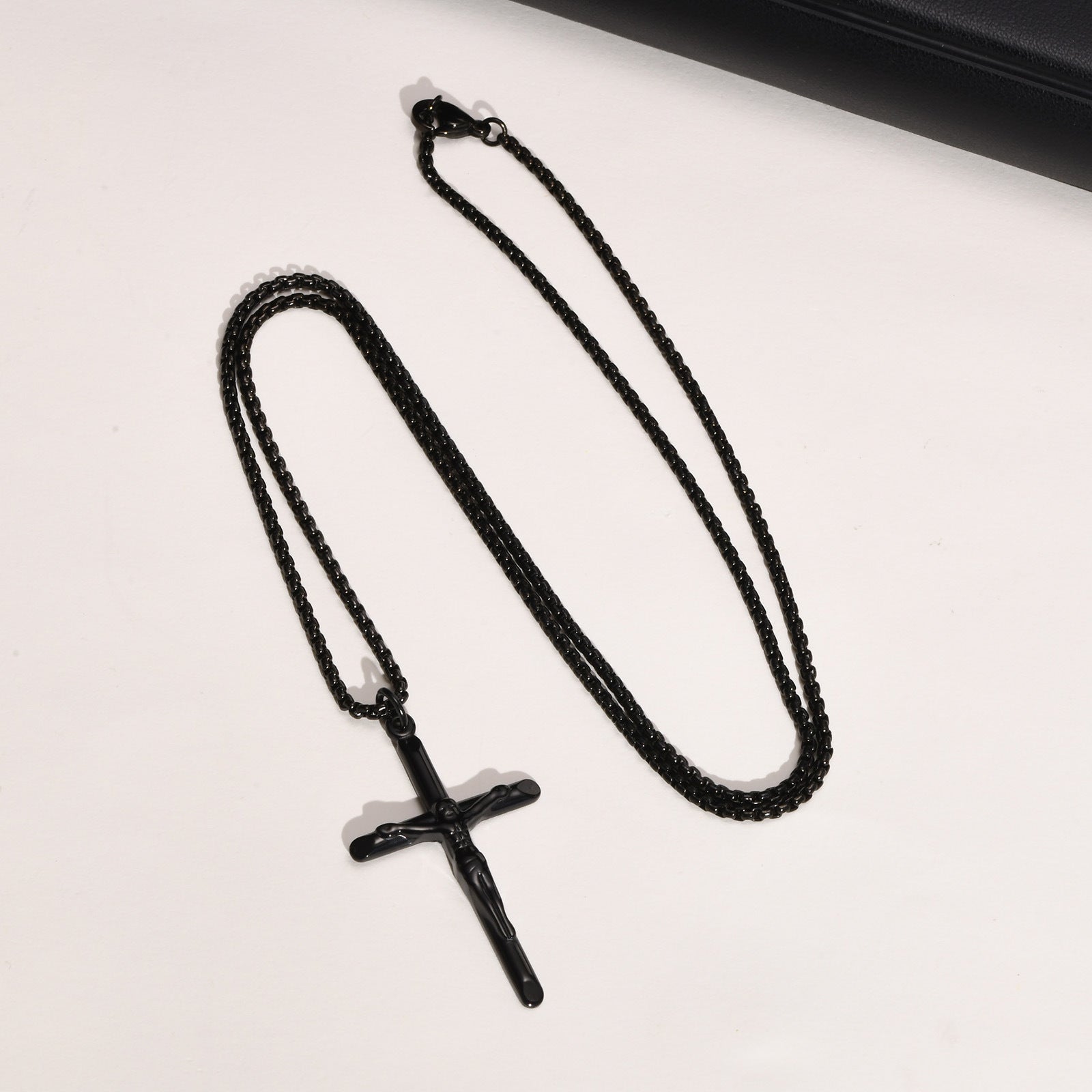 Discover the perfect blend of style and durability with our European and American jewelry titanium steel, stainless steel cross necklace, black gold men's fashion accessories wholesale for men. Crafted from high-quality titanium steel, this striking cross necklace is not only a fashion statement but also a symbol of strength and faith. Its sleek black gold finish adds a modern twist to a classic design, making it an essential accessory for any man who values both fashion and functionality.