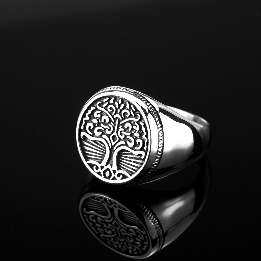 European and American Jewelry Wholesale Men's Titanium Steel Ring Retro Viking Tree of Life Design