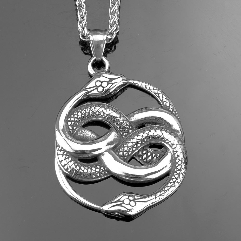 Elevate your style with our European and American jewelry wholesale titanium steel men's pendant stainless steel necklace retro personality double snake winding hip hop necklace for men. This unique piece combines modern design with timeless elegance, making it the perfect accessory for any occasion.