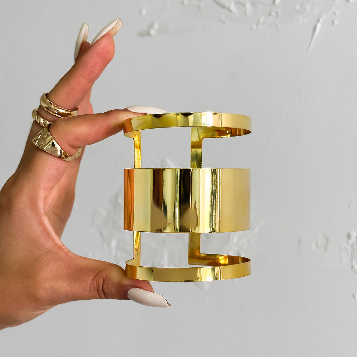 Embrace a cool and punk style with the wide edition European and American Metal Hollowed Out Bangle for women. This cross-border jewelry piece from the Planderful Collection named Vienna Verve is a must-have accessory to elevate your look.