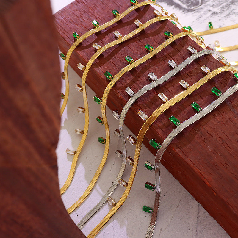 Cold Wind Zircon Pendant Snake Bone Necklace with Geometric Charm - 18K Gold Plated Titanium Steel