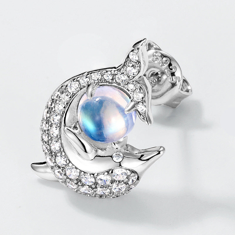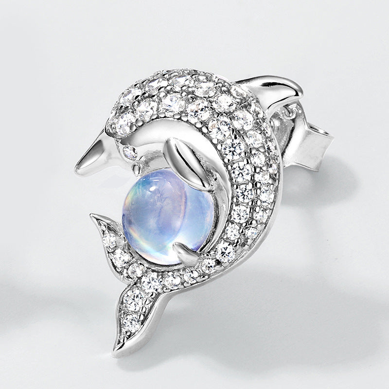 European and American new fashion cute dolphin stud earrings S925 sterling silver inlaid colorful blue moonlight earrings women's ins style earrings by Planderful delivers a charming and stylish accessory that elevates your everyday look. Designed for women who love unique, fashionable jewelry, these earrings combine playful elegance with high-quality craftsmanship.