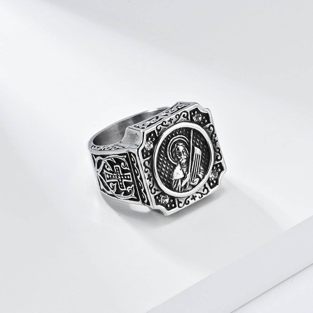 Crafted from high-quality titanium steel, this ring is designed to withstand the test of time while providing an elegant finish. The intricate cross portrait design reflects an old-world charm, making it a perfect accessory for any occasion, whether casual or formal.