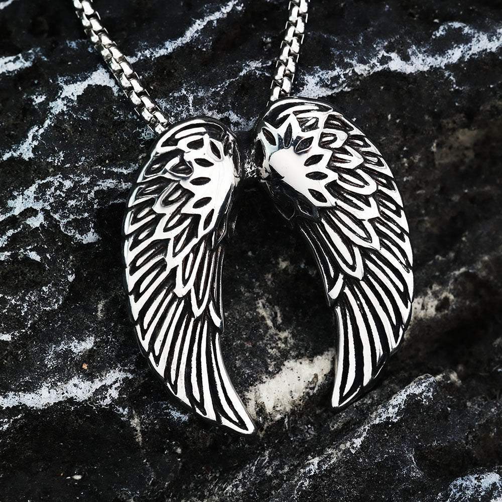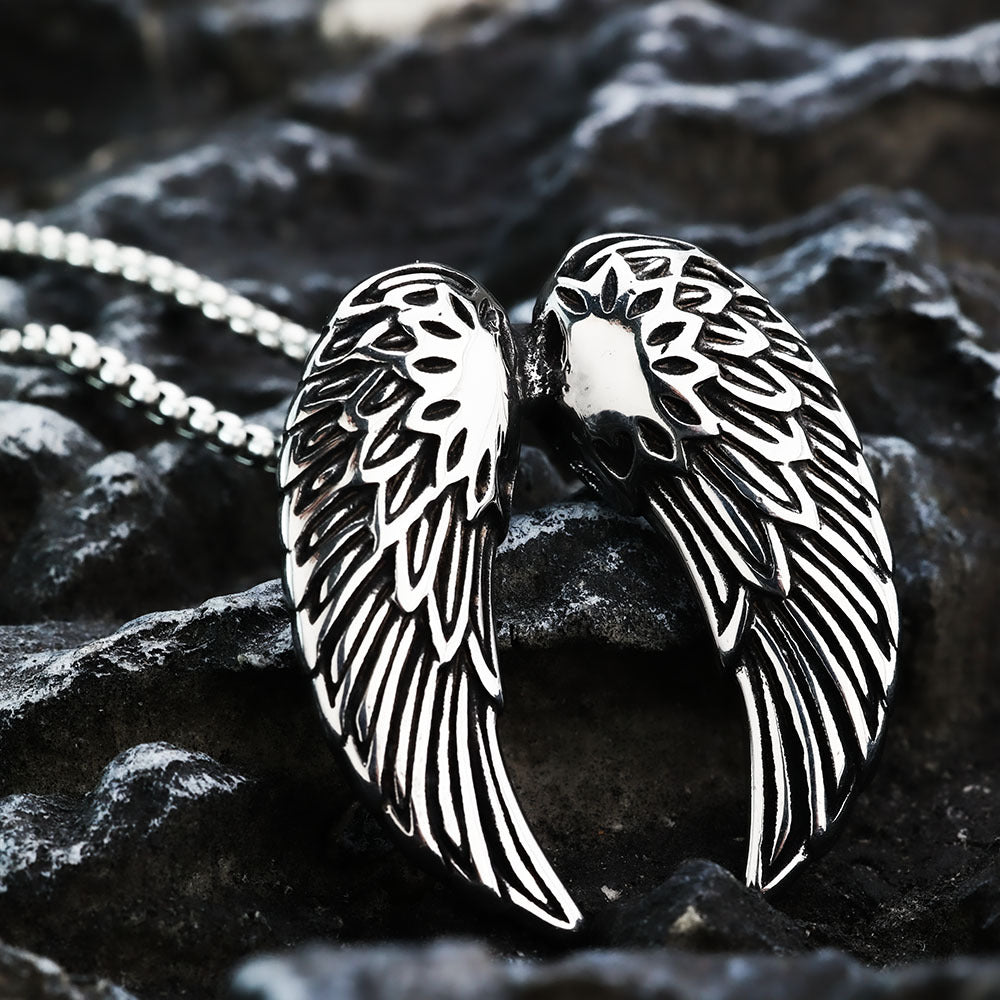 Crafted from high-quality titanium steel, this necklace offers durability while maintaining a lightweight feel. Its unique angel wing pendant symbolizes freedom and protection, making it not just a piece of jewelry but a meaningful statement.