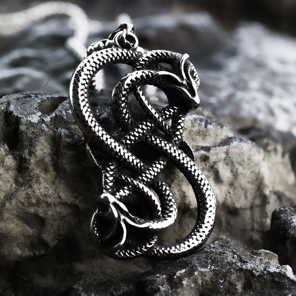The European and American retro stainless steel men's pendant personalized double dragon surround pendant necklace for men is perfect for the modern man who appreciates both classic and contemporary aesthetics. With its durable construction, this necklace ensures longevity and resilience, making it an ideal accessory for any occasion.