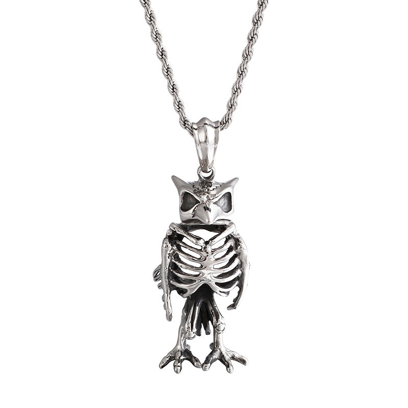 Unleash your edgy style with our European and American stainless steel animal pendant, a stunning piece of men's jewelry that boasts the unique owl skeleton design in titanium steel.