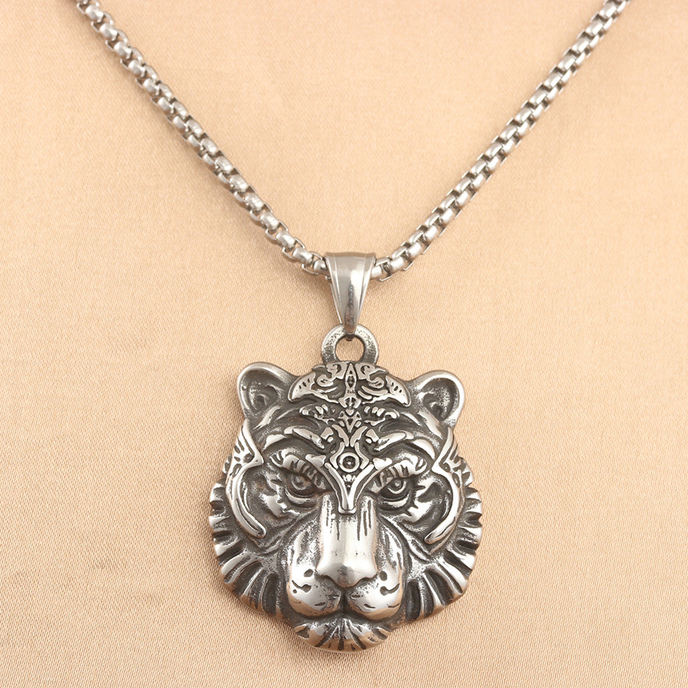 European And American Stainless Steel Tiger Pendant Necklace For Men