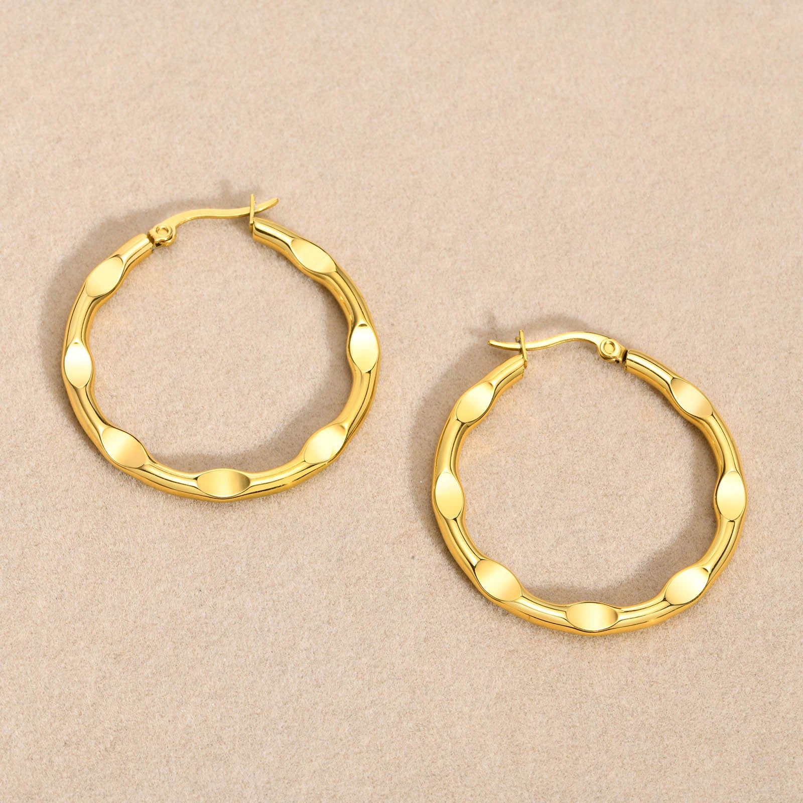 Step into the world of fashion with our stainless steel fashion versatile round hammer earrings in gold. Perfect your accessory collection today!