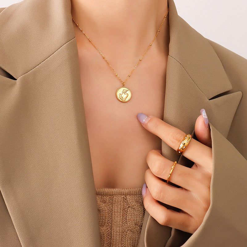Luxurious Round Brand Necklace in Titanium Steel with 18K Gold Plating