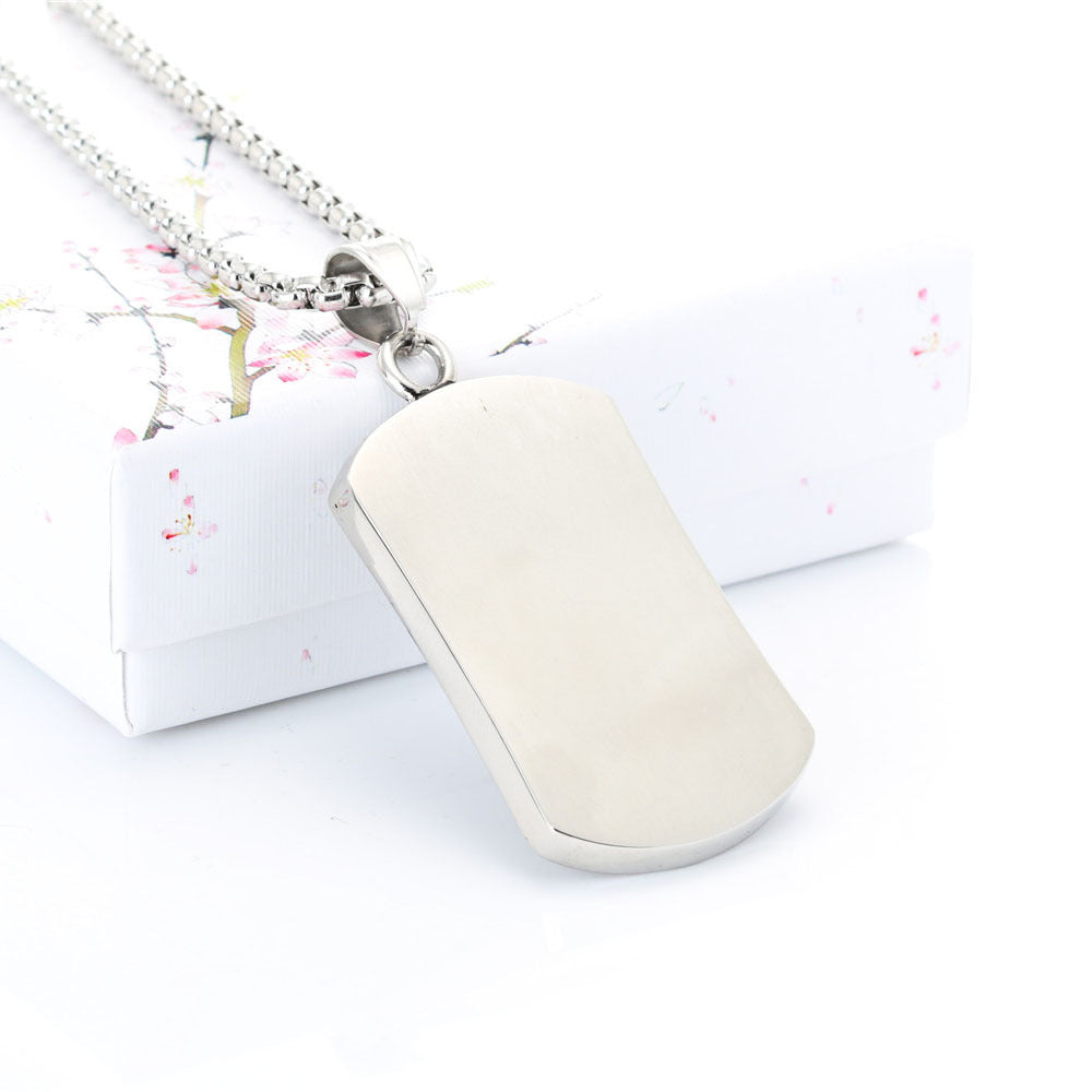 Embrace the bold and sophisticated essence of our European and American Titanium Steel Long Military Brand Pendant. This retro-inspired accessory is designed for the modern man who values both style and durability.
