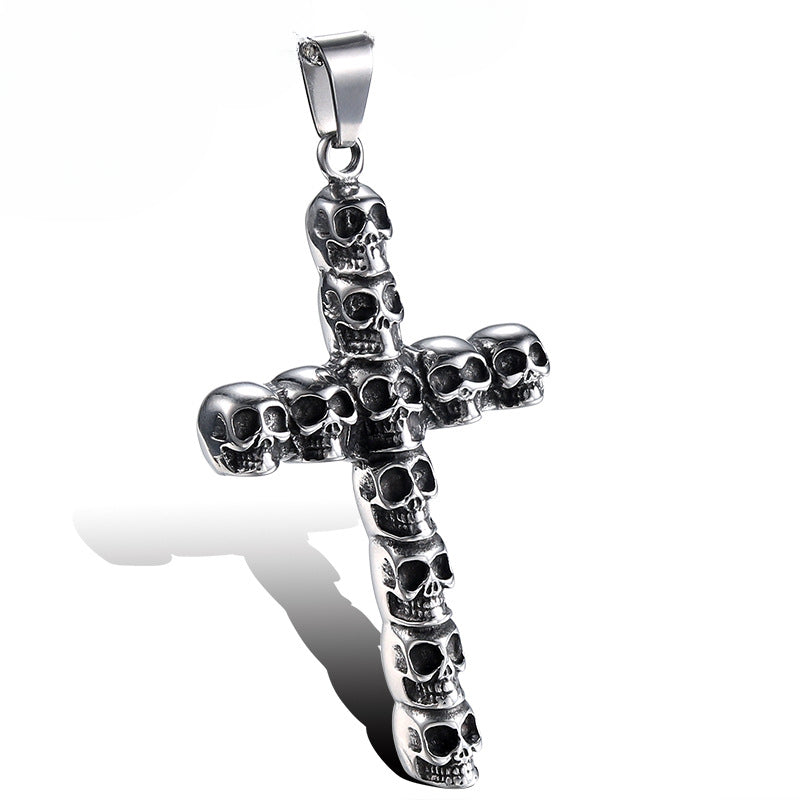 Introducing the European and American totem retro stainless steel cross pendant, a striking accessory designed for the modern man who embraces individuality and bold expression. This personalized punk men's skull pendant is not just a piece of jewelry; it’s a statement of character and style.